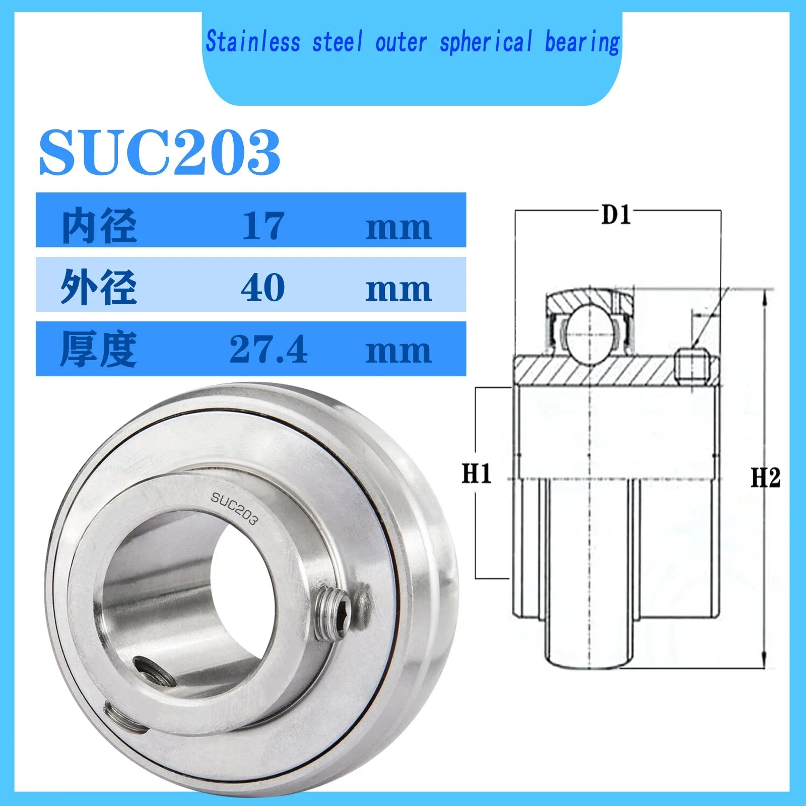 WZZG SUC203 Stainless steel outer spherical bearing 17*40*27.4 mm High quality mechanical bearings