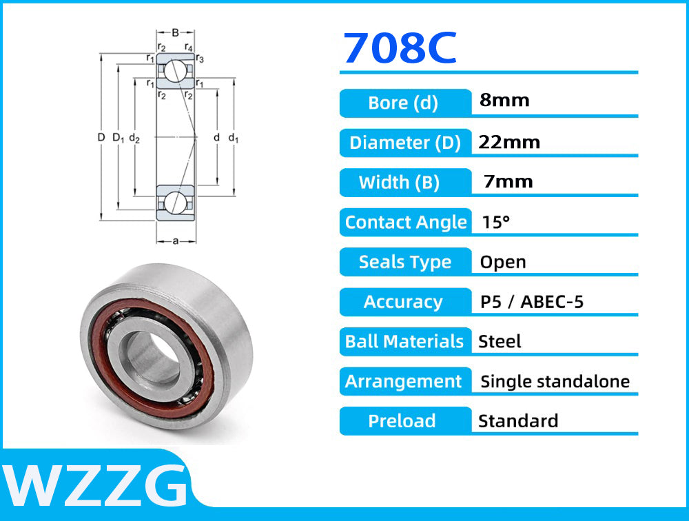 708C 10pcs/lot 708 8*22*7mm Miniature Angular Contact Bearings