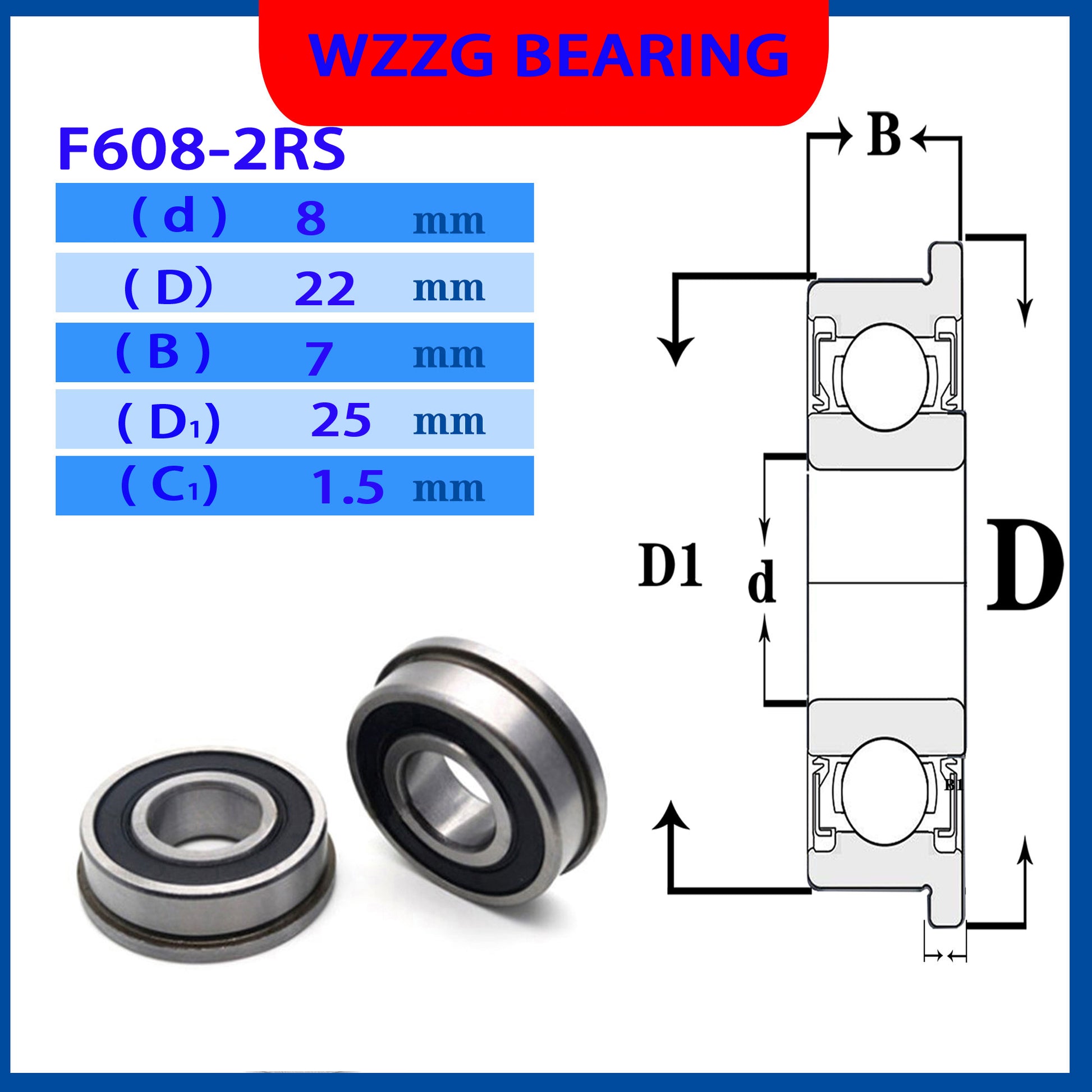 WZZG 10PCS F608ZZ 8*22*7mm double shield bearing steel flange F608-2RS ball bearing