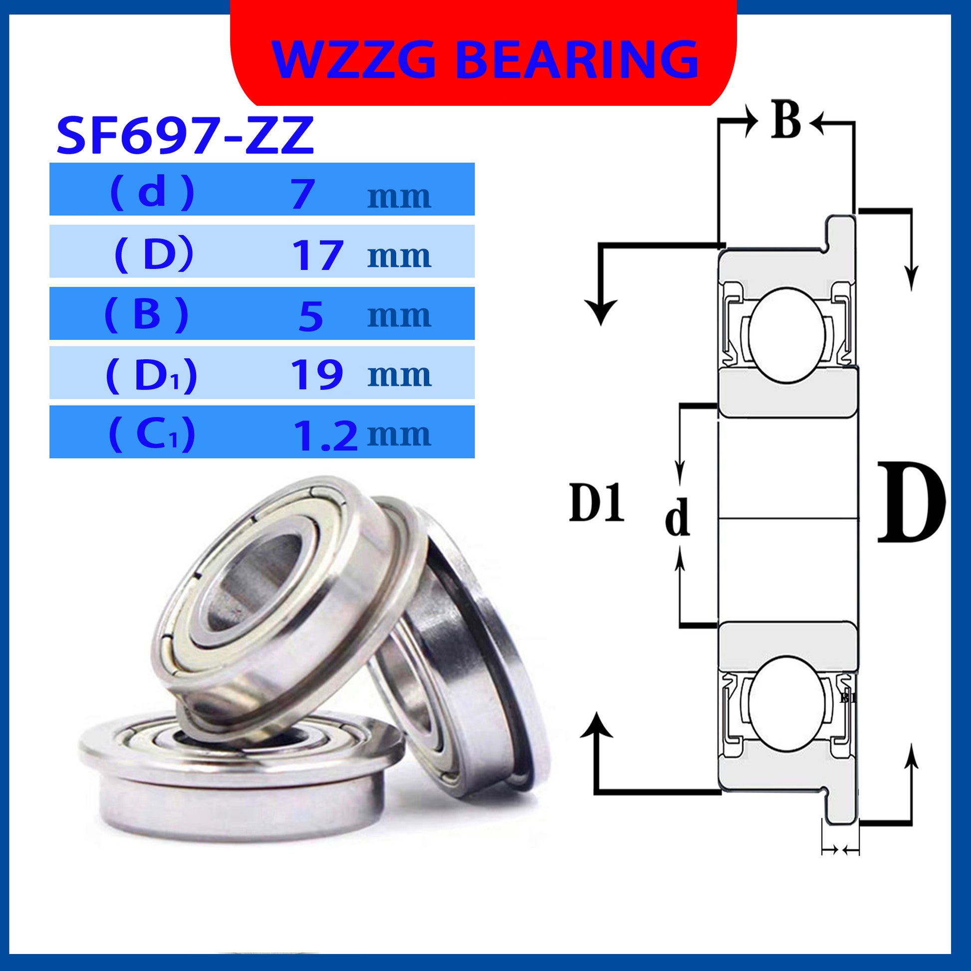 WZZG 10PCS F697 ZZ Double Shielded Bearing Steel Flange Ball Bearing SF697-ZZ Width 5mm 6mm