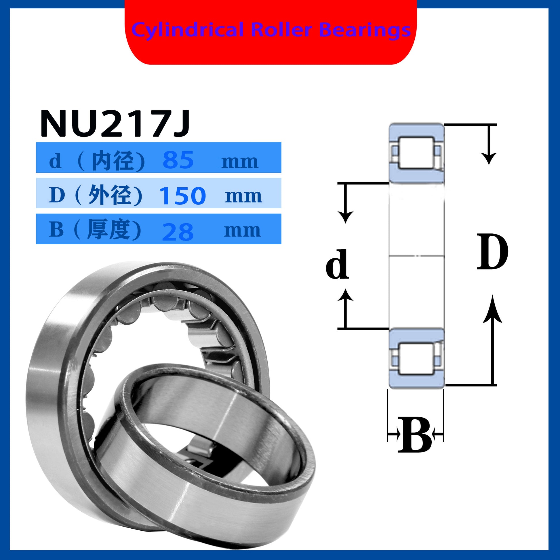 WZZG 1PCS High quality cylindrical roller bearings N2173J NJ NU217J NCF217V NJ217V 85*150*28mm