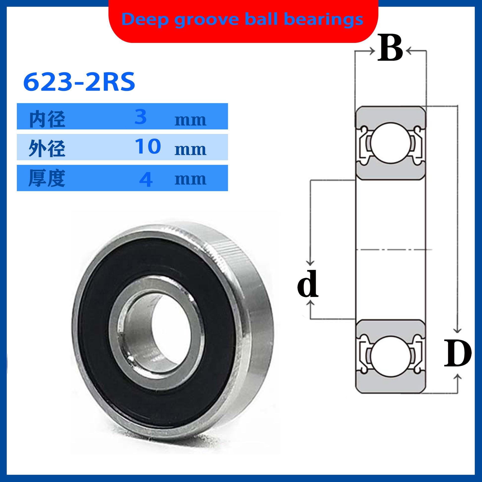 WZZG 20PCS Double Shield Miniature Stainless Steel Bearing S623ZZ 2RS 3D Printer Accessories Bearing 623ZZ 2RS
