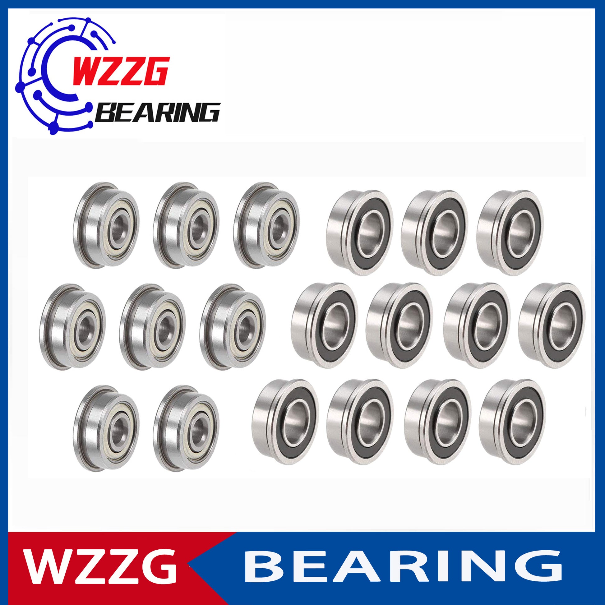 WZZG 20PCS F695ZZ 5*13*4 mm double shield bearing steel flange F695-2RS ball bearing