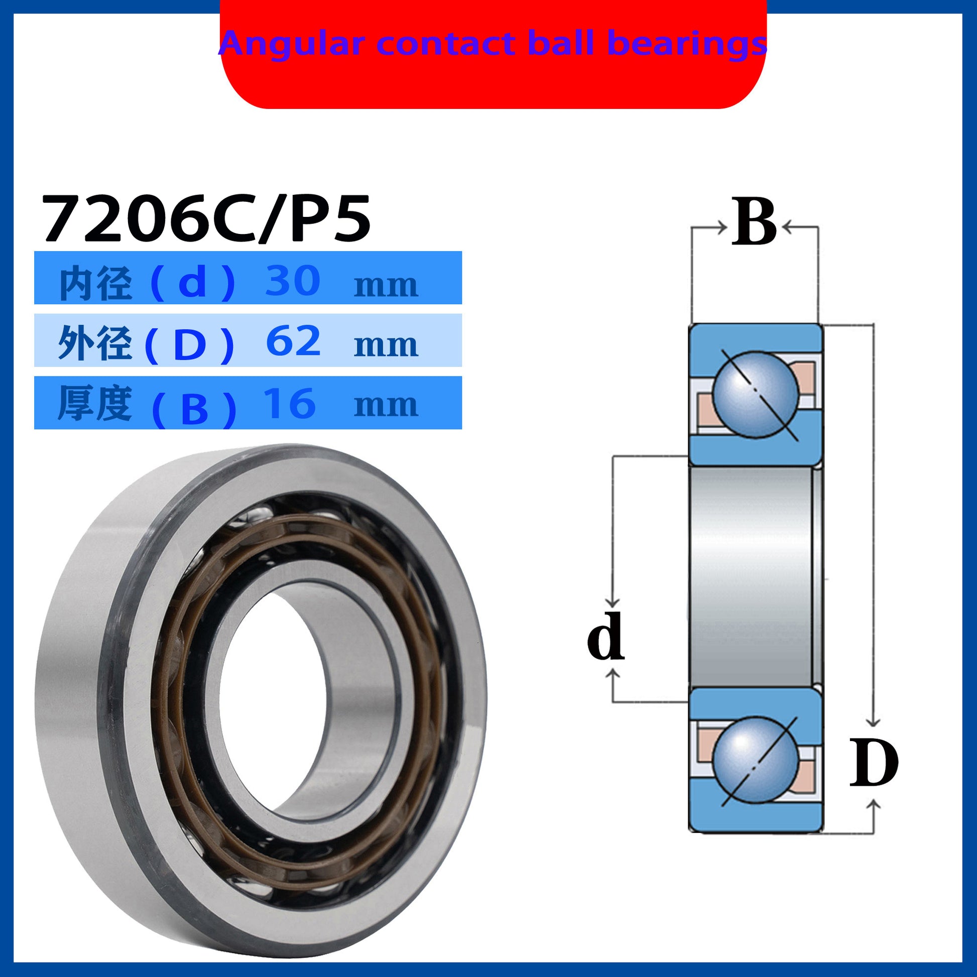 WZZG 2PCS/lot 7206C AC ACM B BW BM 7206-2RS 30X62X16mm Precision Angular Contact Bearings