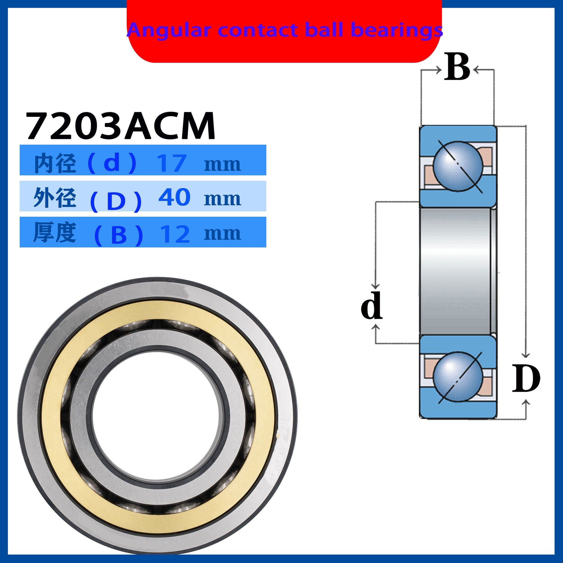 WZZG 4PCS/lot 7203C AC ACM B BW BM 7203-2RS 17X40X12mm Precision Angular Contact Bearings