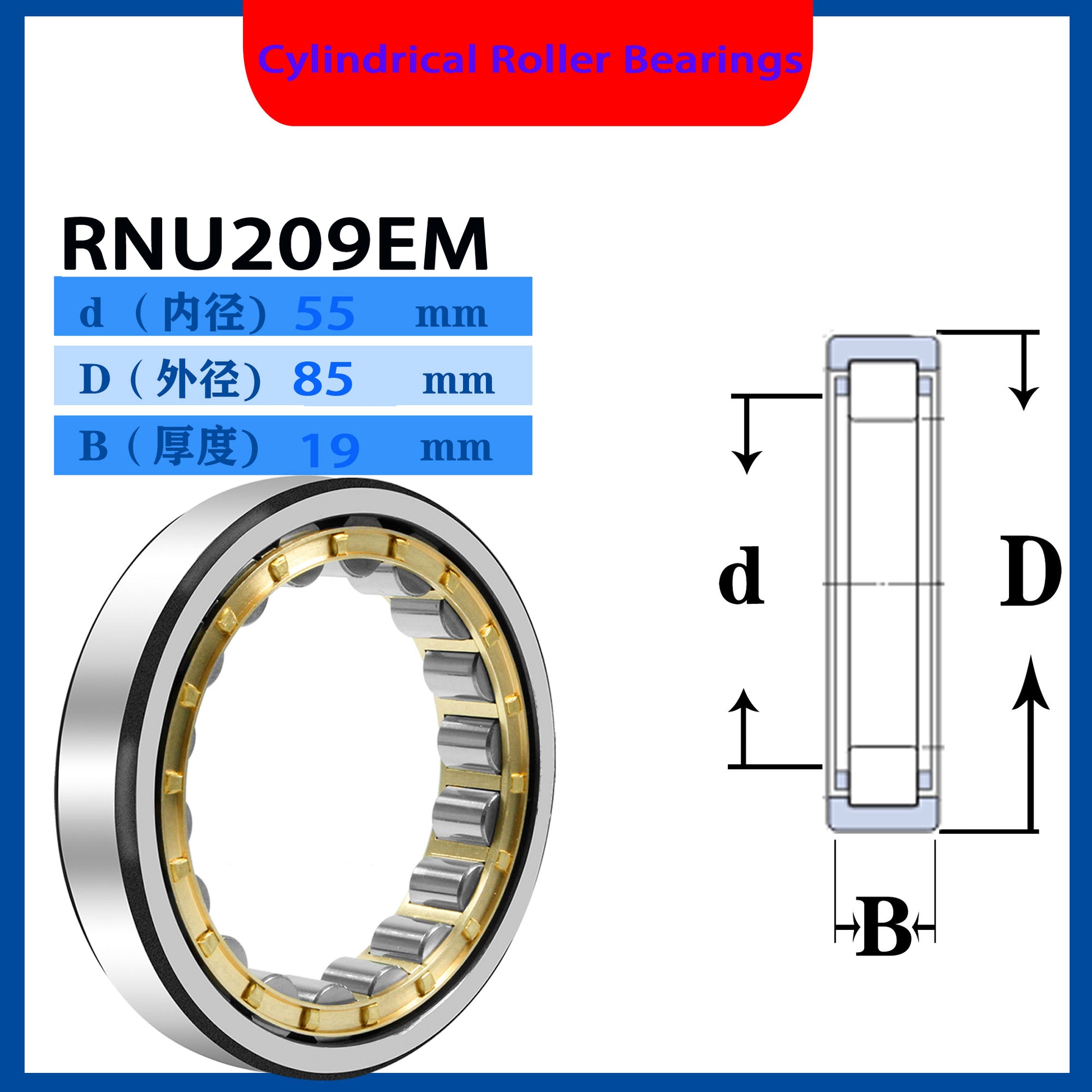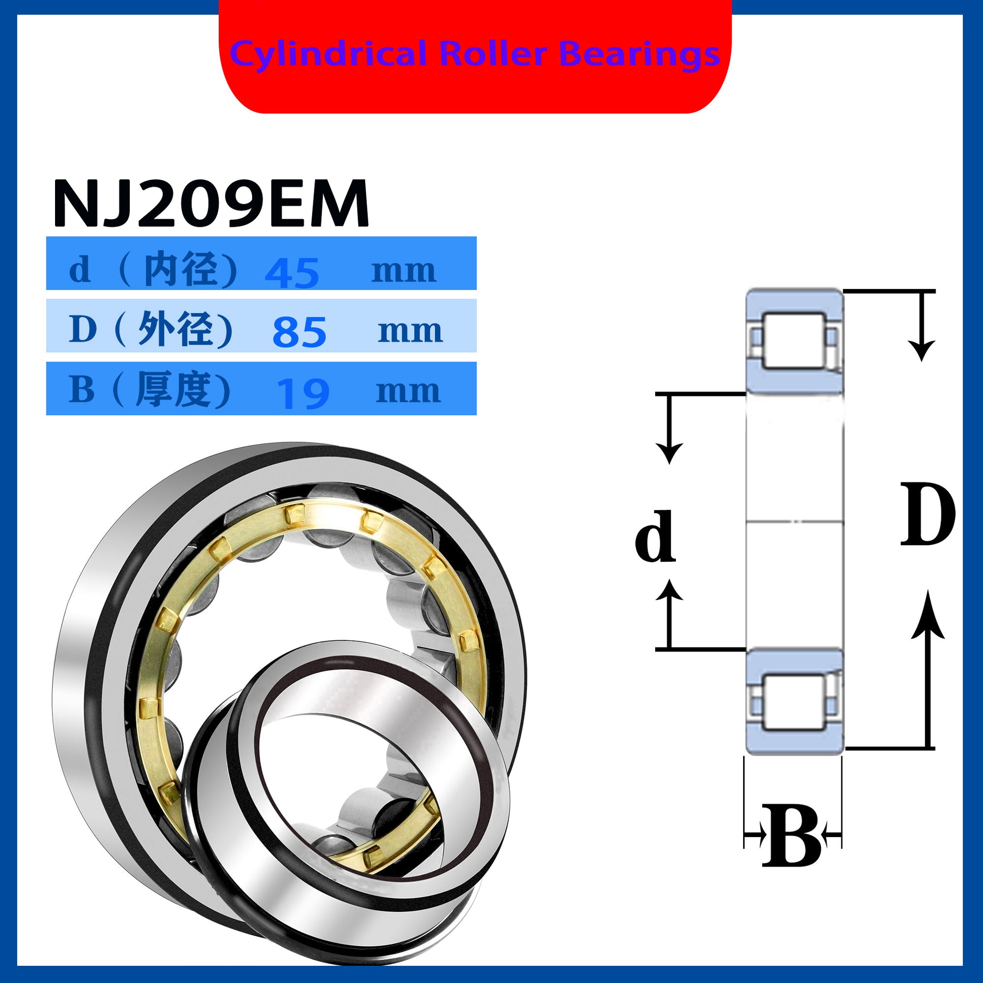 WZZG 1PCS High quality cylindrical roller bearings N209 NJ209 NU NUP209 RN RNU NF209EM N NJ NU209E 45*85*19mm