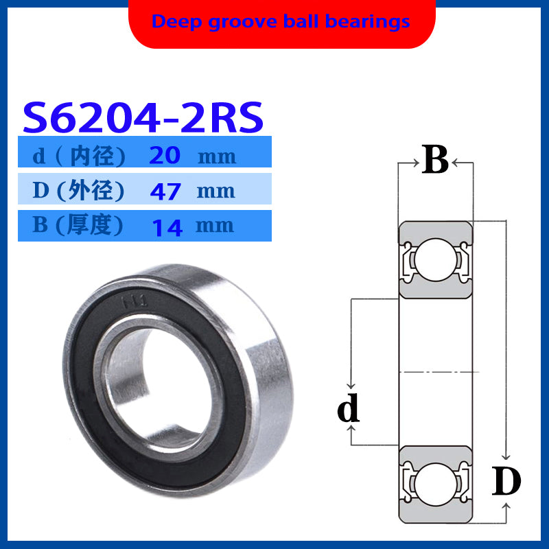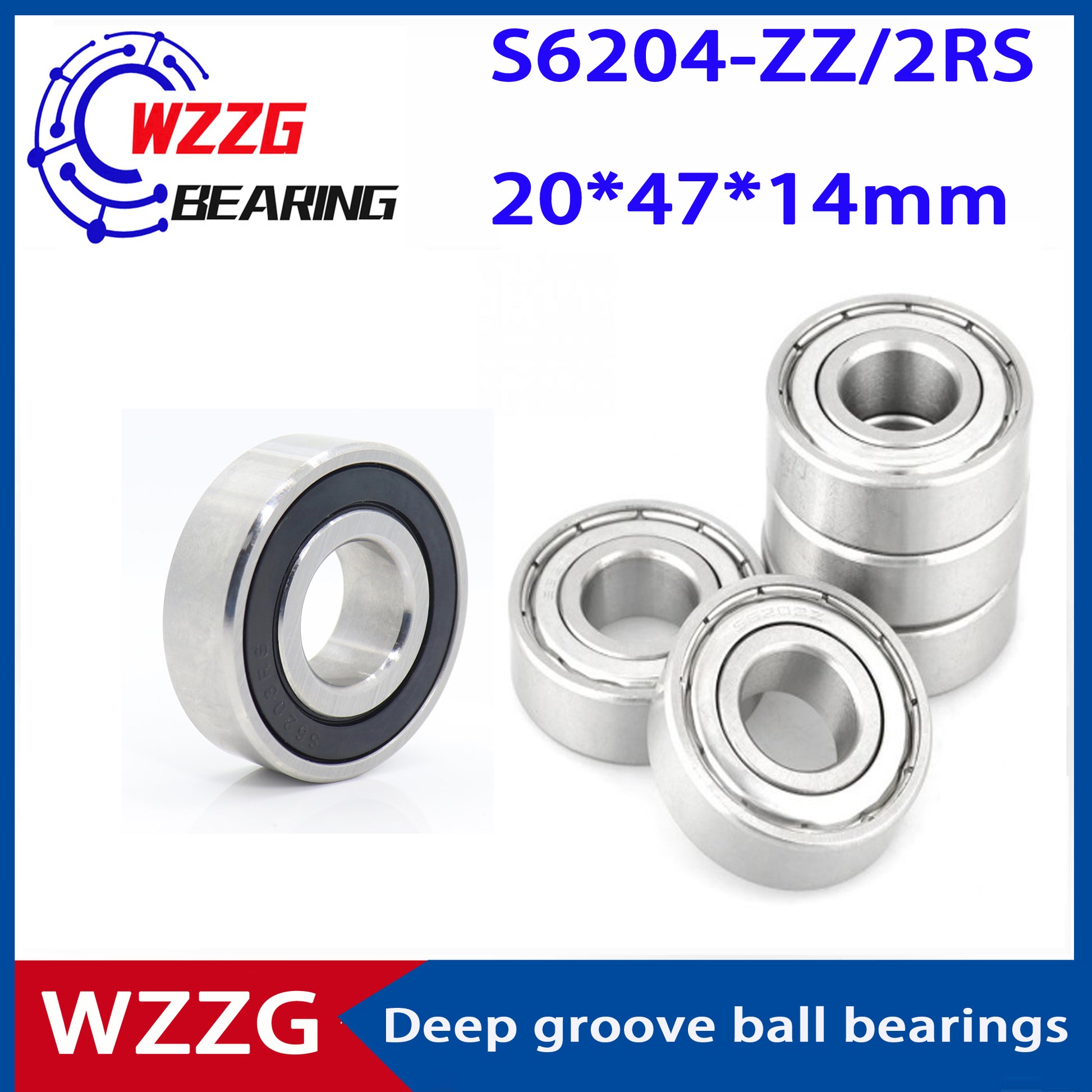WZZG 2PCS/lot High quality stainless steel deep groove ball bearing S6204 ZZ 2RS size 20*47*14mm
