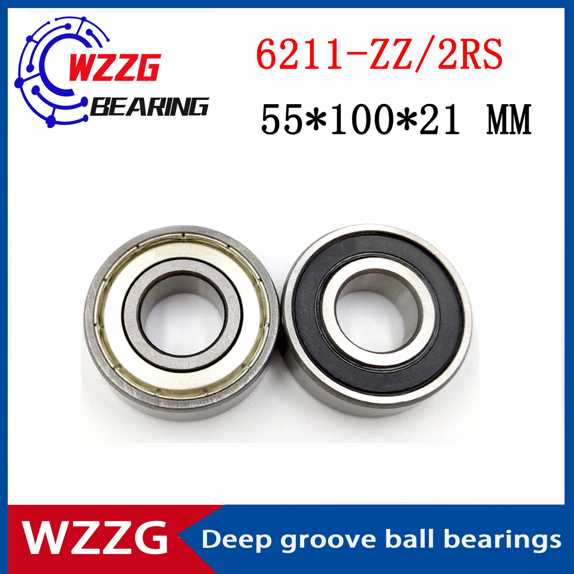 WZZG Deep groove ball bearing 6211-ZZ 2RS (2pcs/lot) 55*100*21 mm double seal high quality bearings