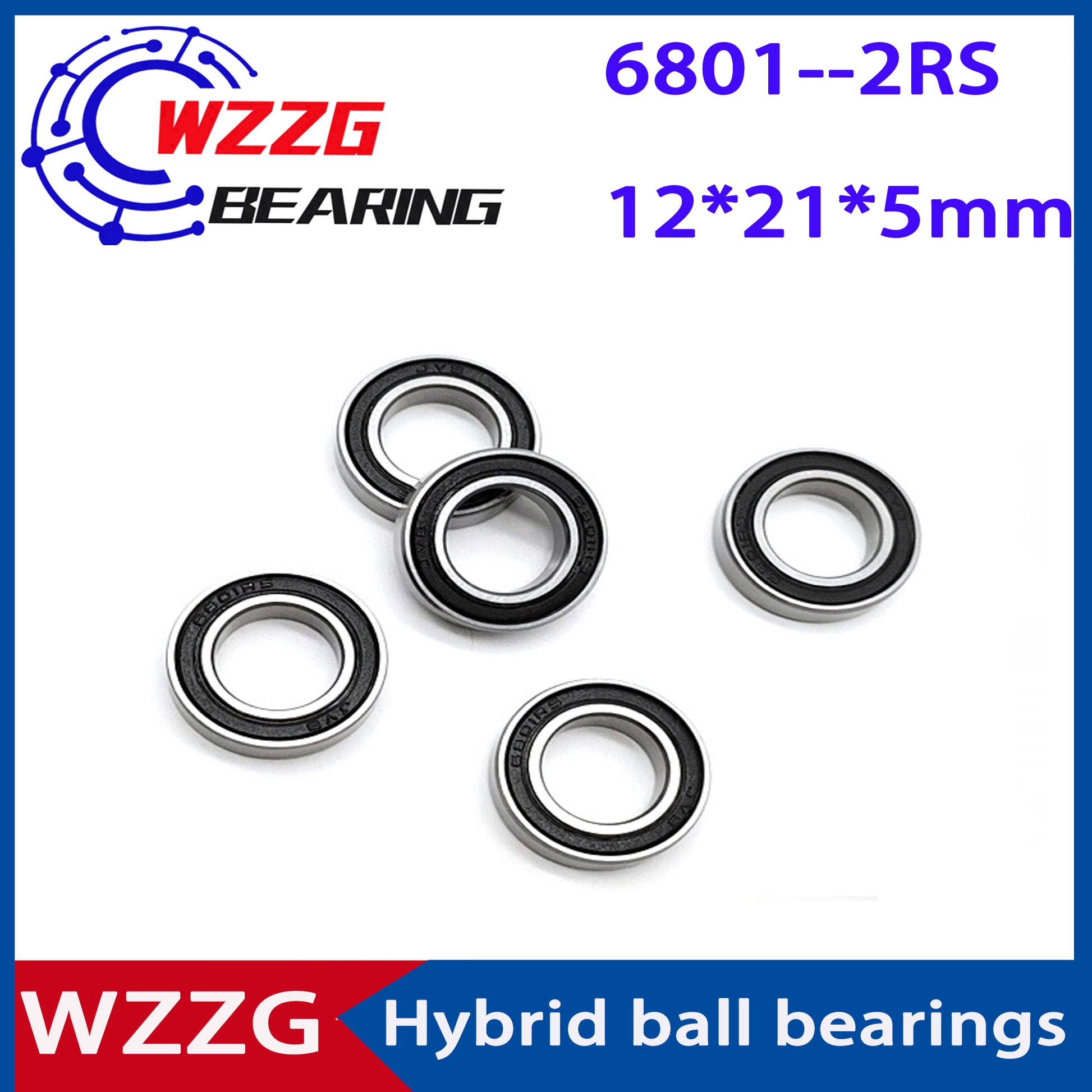 WZZG 2PC/lot Thin-walled deep groove ball bearing 6801-2RS bicycle hybrid ceramic bearing 12*21*5mm