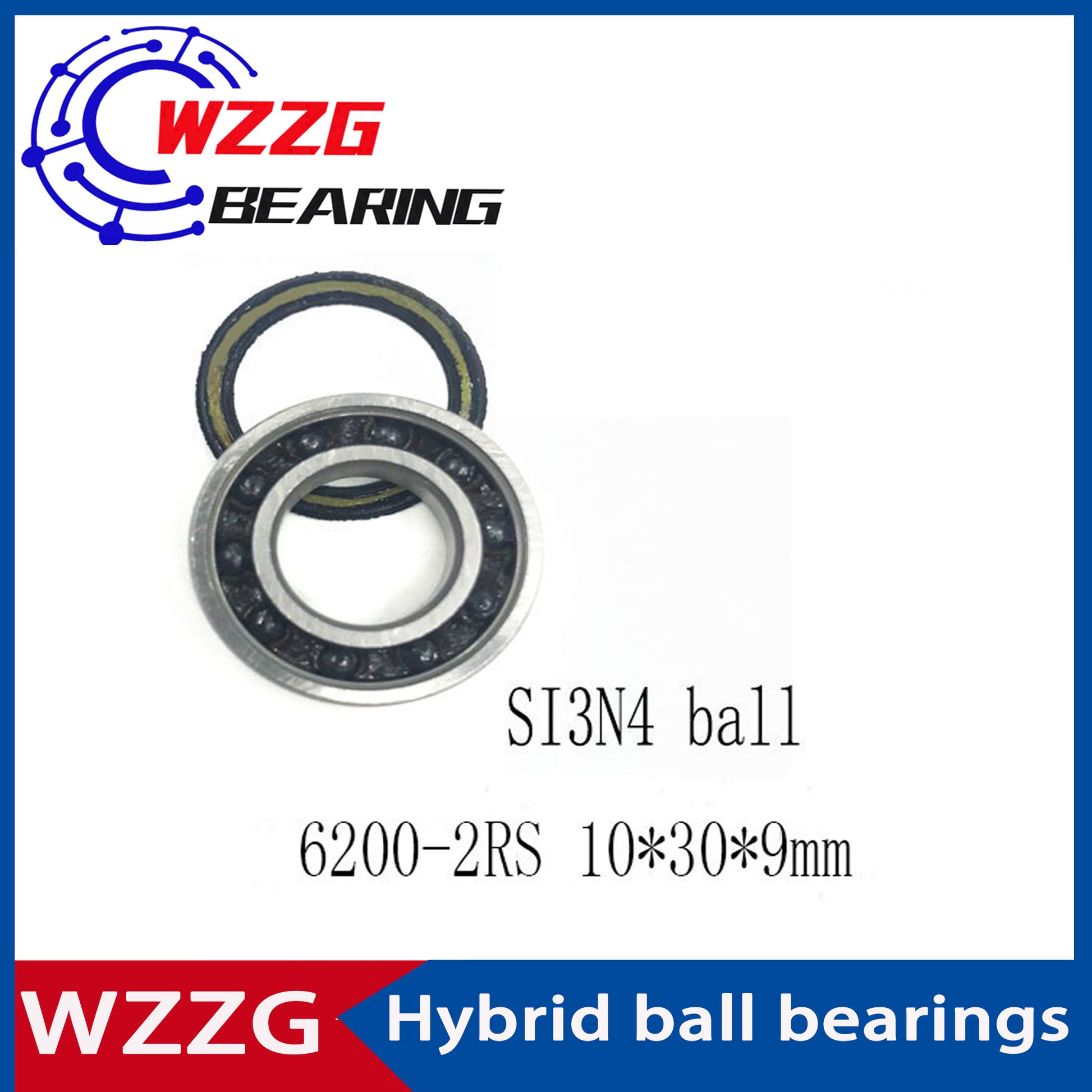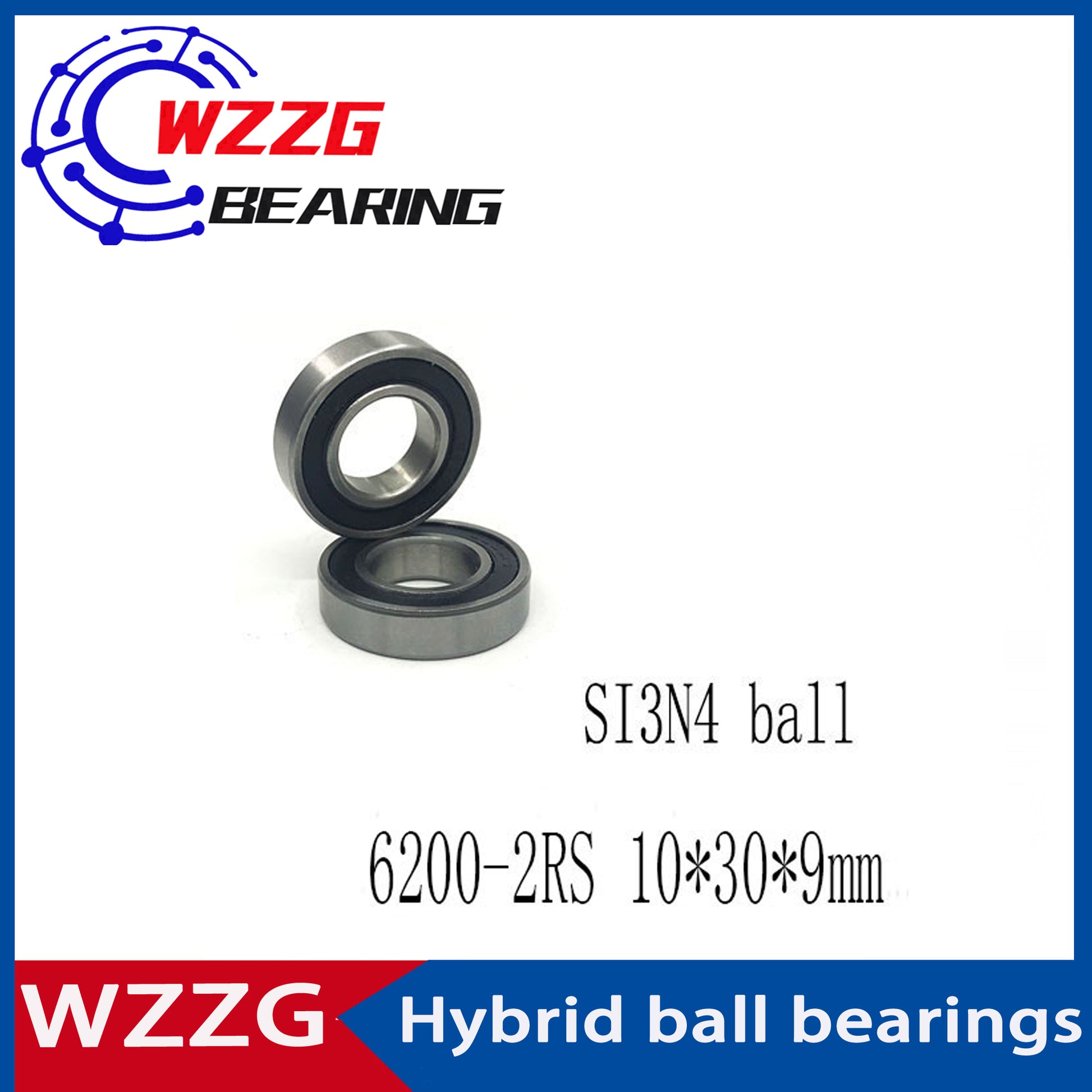 WZZG 2PCS/lot 6200-2RS 10X30X9mm Hybrid ceramic SI3N4 ball Bearings bicycle Bearing