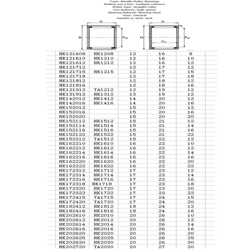 WZZG 20pcs HK2010 HK2012 HK2014 HK2016 Drawn cup cage needle roller bearings