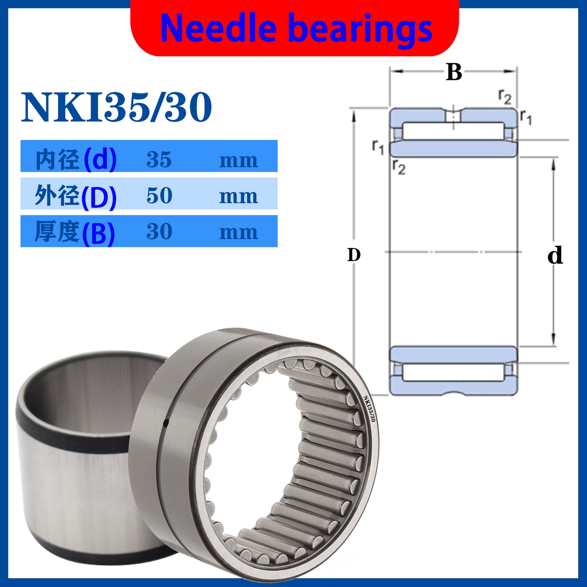 WZZG NKI 35/20 NKI 35/30 ( 2 PCS/lot )bearings 35*50*20 35*50*30mm solid ring needle roller bearing with inner ring