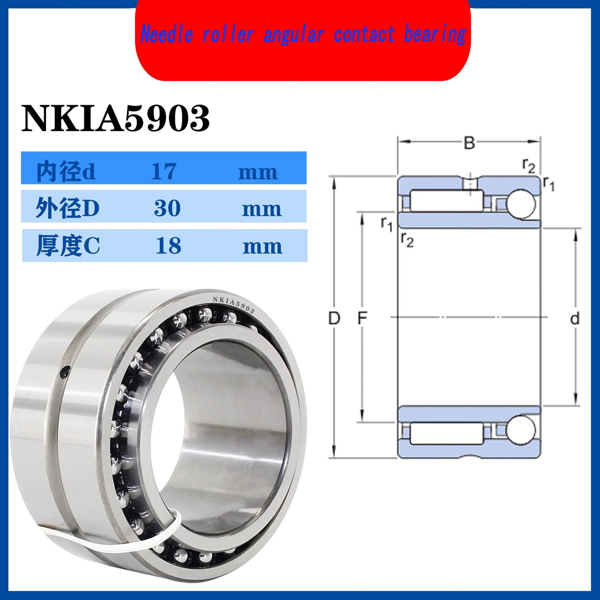 WZZG NKIA5903( 2 pcs) Complex Bearings 17*30*18mm Needle Roller Angular Contact Ball Bearing NATA5903 NATA 5974903