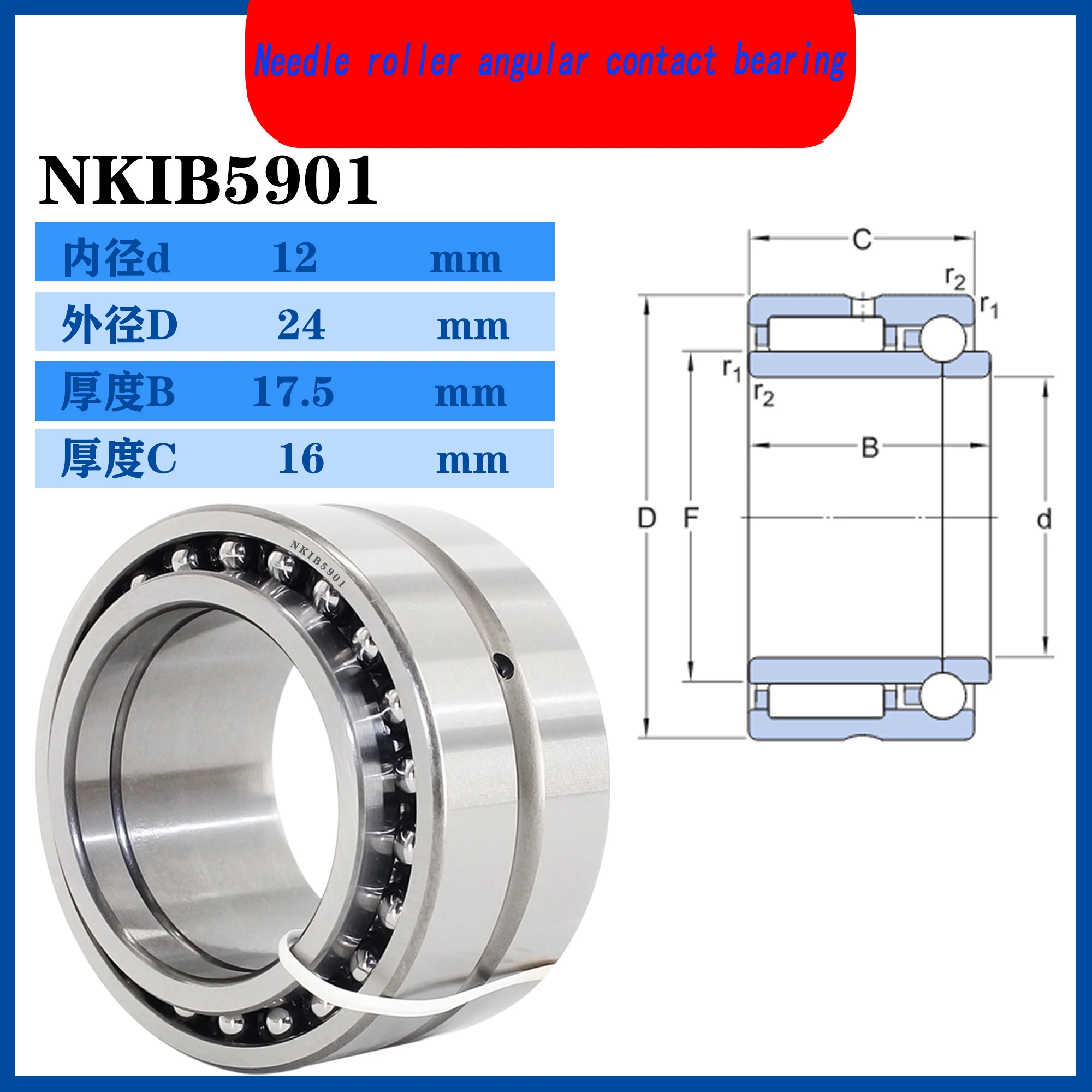 WZZG NKIB5901 ( 2 pcs)Complex Bearings 12*24*18mm  Needle Roller Angular Contact Ball Bearing NATB5901 NATB 5974901