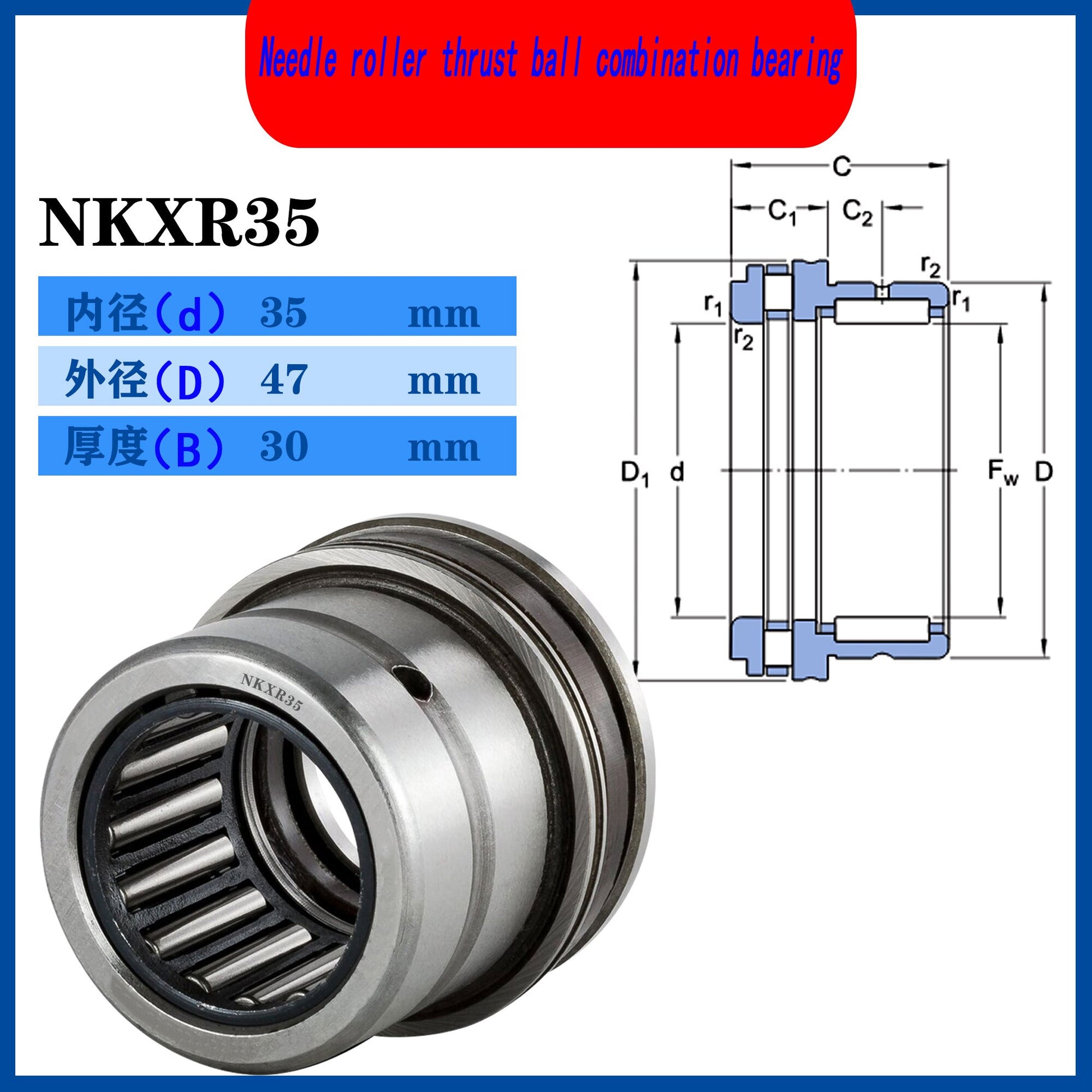WZZG NKXR35 NKXR35Z Needle Roller Thrust Ball Combination Bearing High Quality Mechanical Bearing 35*47*30mm