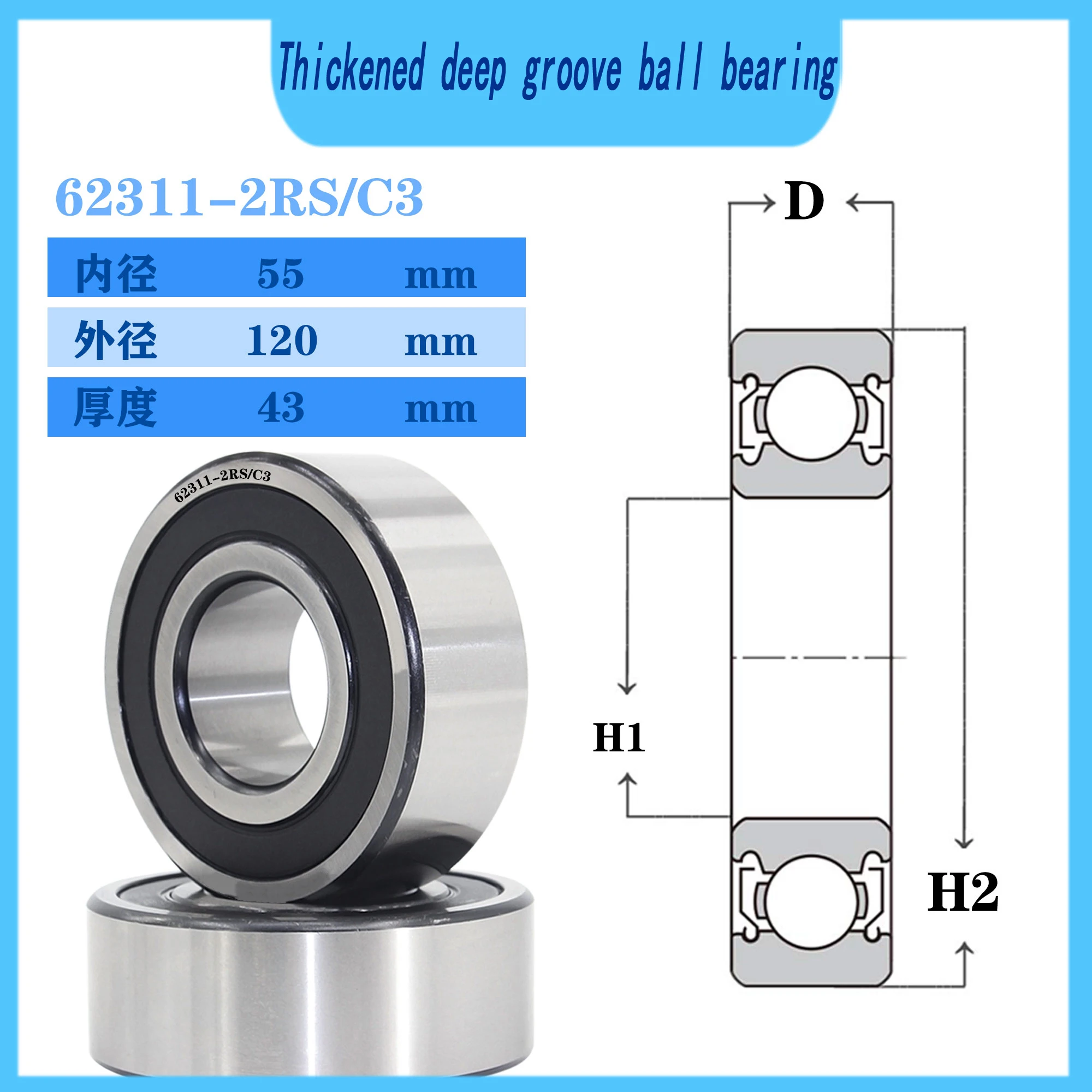 WZZG Thickened non-standard deep groove ball bearings 62311ZZ/2RS