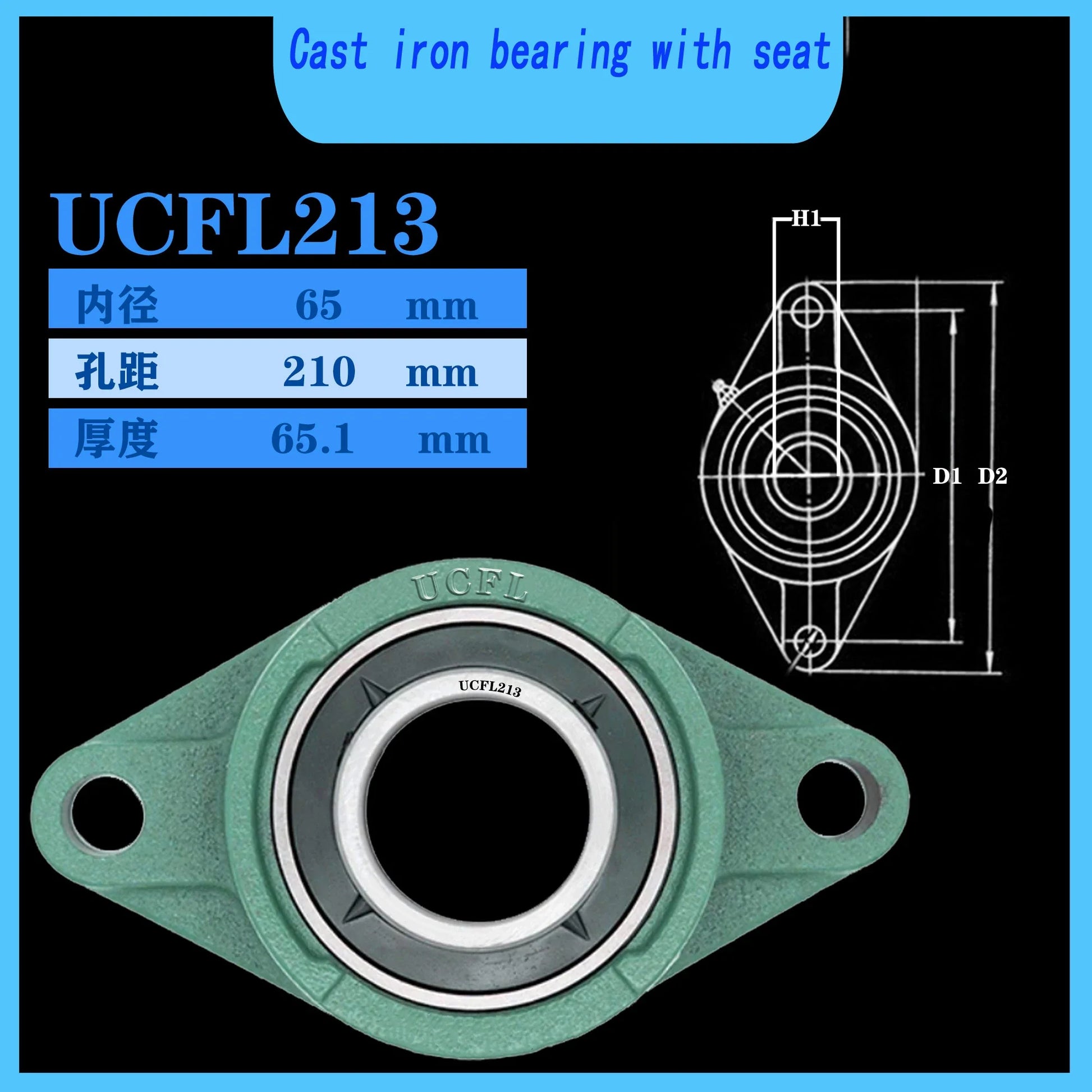 WZZG Seat Outer Spherical Bearing UCFL213 Mounted Pillow Block Bearing Solid Base Cast Iron Housing high-quality bearing