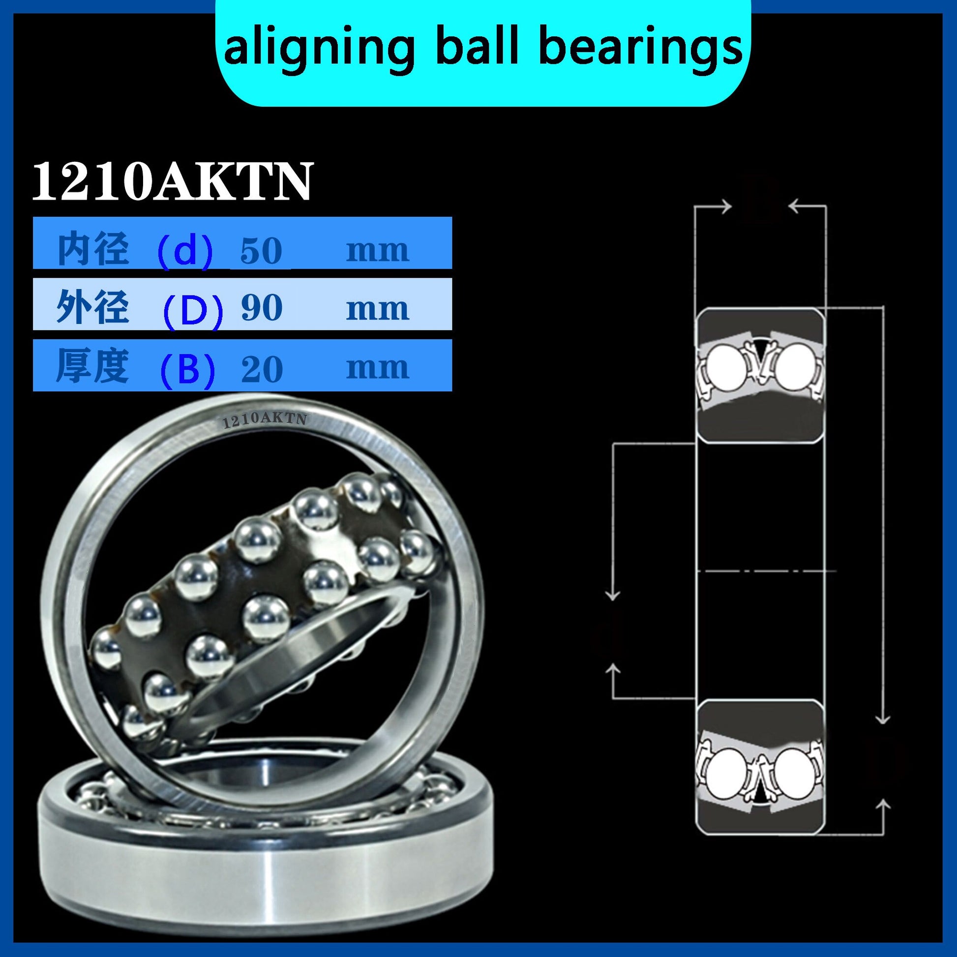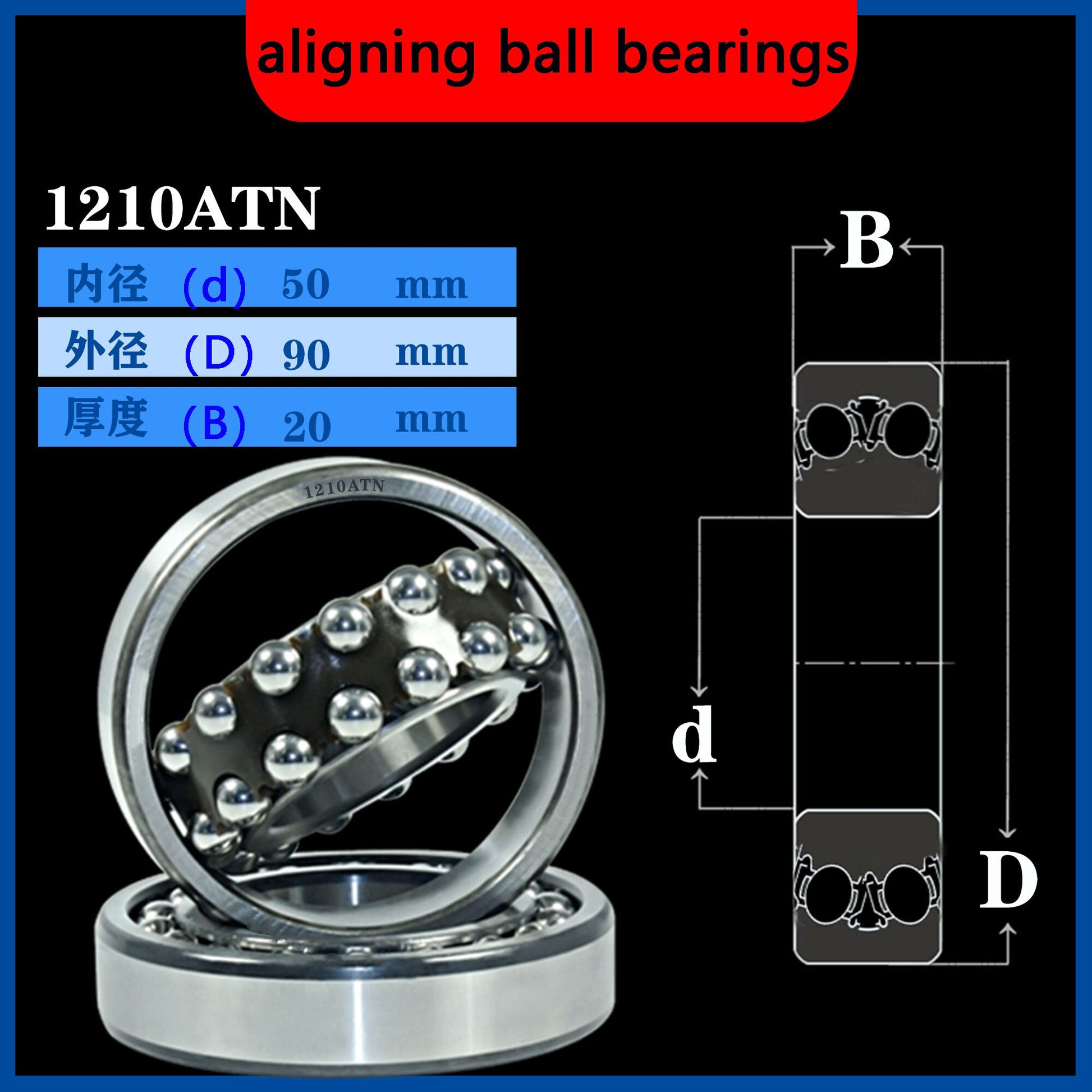 WZZG Self-aligning ball bearings (4pcs/lot) 1210E EK ATN AKTN M high-quality double row self-aligning ball bearings 50*90*20mm