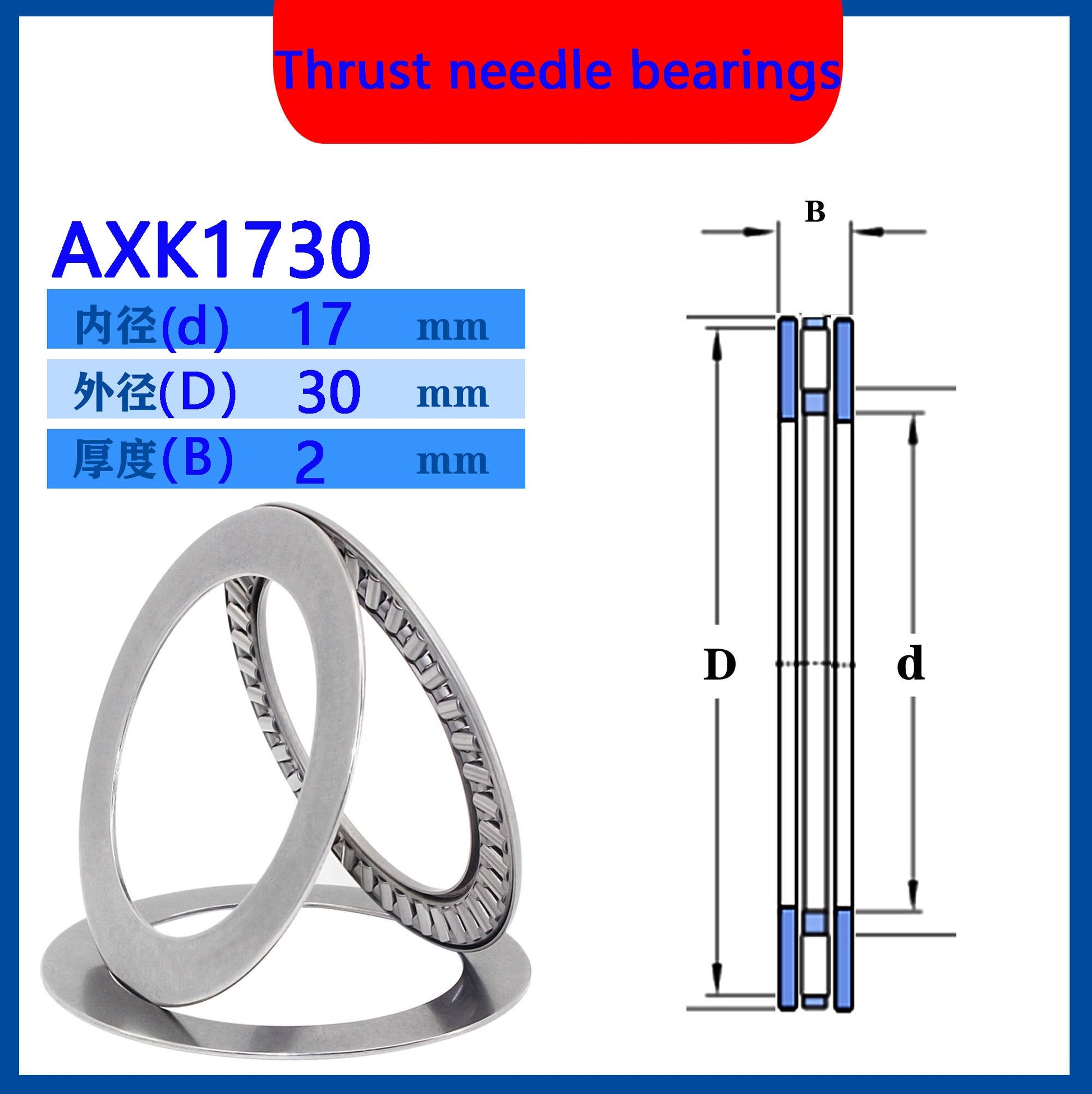 WZZG AXK1730+2AS(10pcs/lot) Thrust needle roller bearings High quality plain thrust bearing with two washers