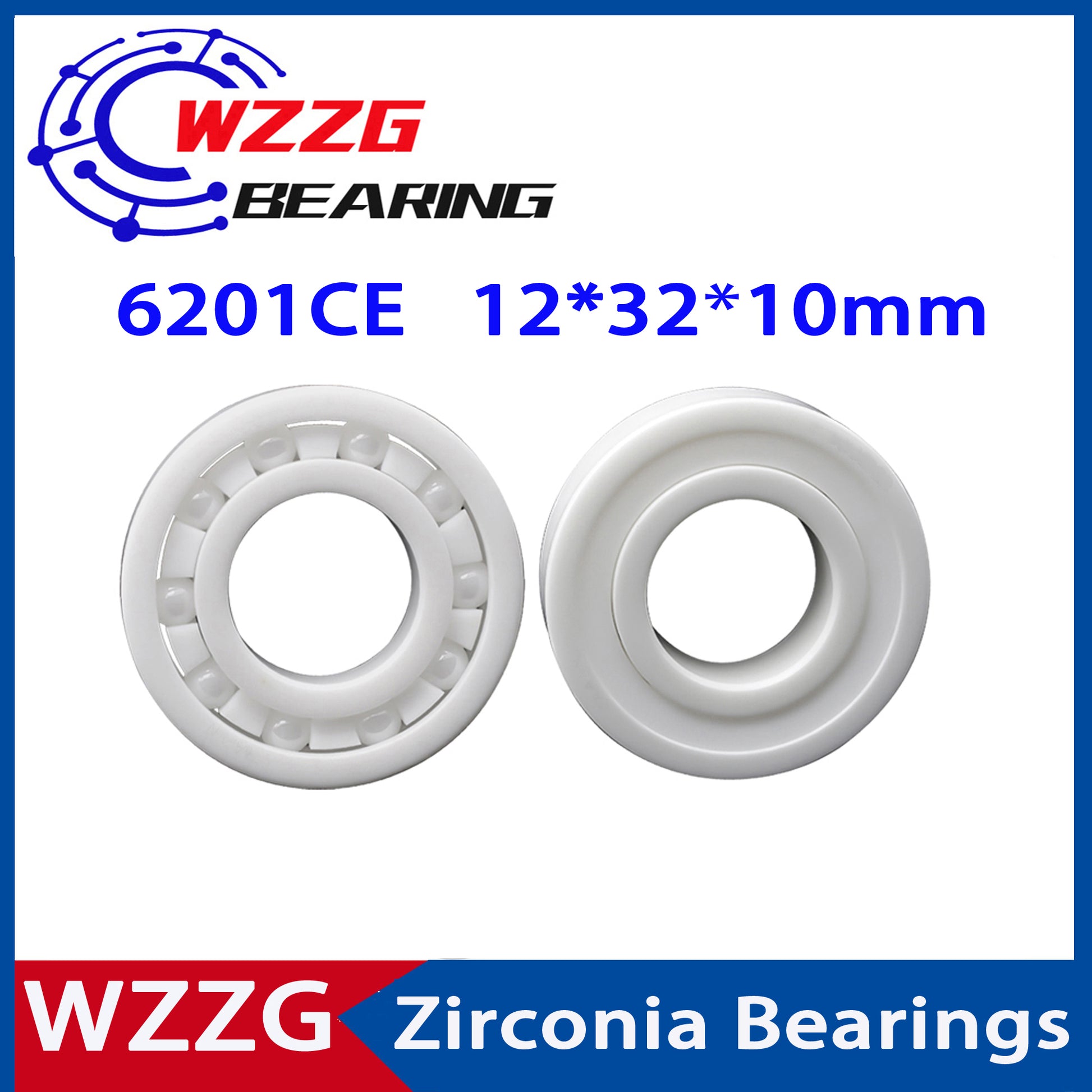 WZZG 6201 Full Ceramic Bearing ZrO2 1PC 12*32*10 mm Ceramic ball bearing slide 6201CE 6201CE-2RS