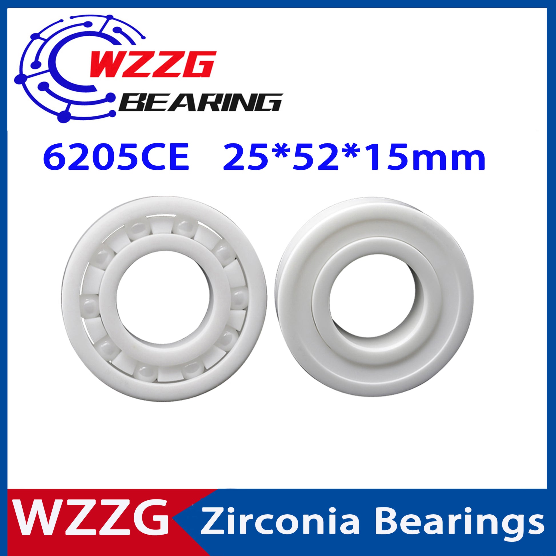 WZZG 6205 Full Ceramic Bearing ZrO2 1PC 25*52*15 mm Ceramic ball bearing slide 6205CE 6205CE-2RS