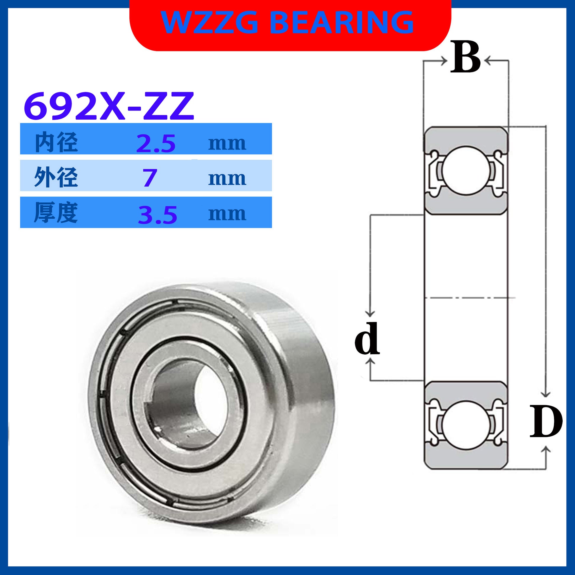 WZZG 20PC/lot 692X-ZZ deep groove ball bearings 2.5x7x3.5 mm miniature bearing