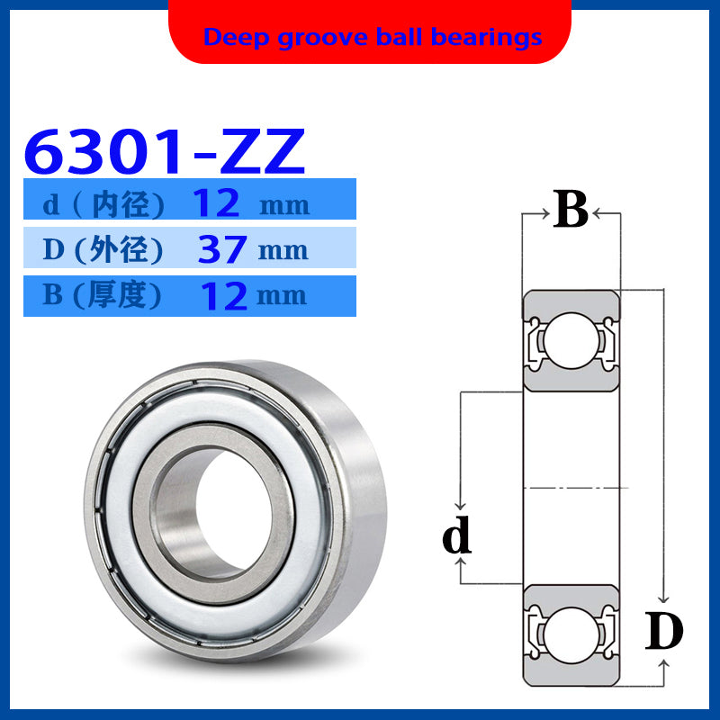 WZZG 10PCS/lot High Quality Bearing Steel Deep Groove Ball Bearing 6301ZZ 2RS Size 12*37*12mm
