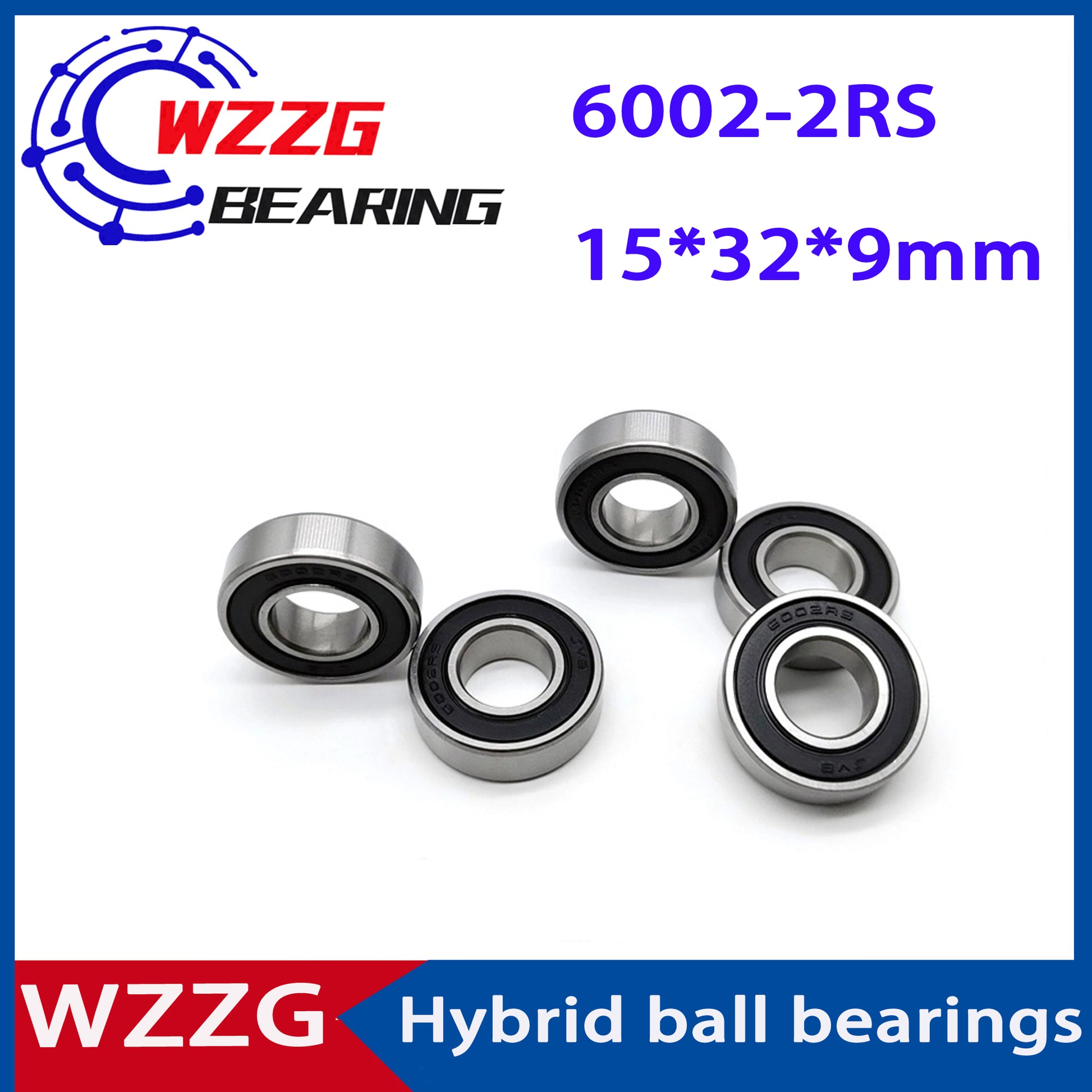 WZZG 2PC Precision motor bearing 6002-2RS 15*32*9mm hybrid ceramic ball bearing with high speed and low noise