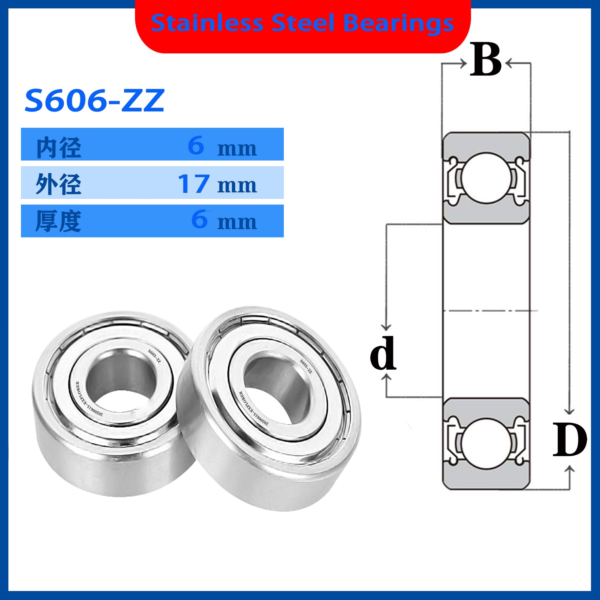 WZZG 20PCS Double Sealed Miniature Stainless Steel Bearing Model Bearing 606ZZ 2RS S606ZZ 2RS