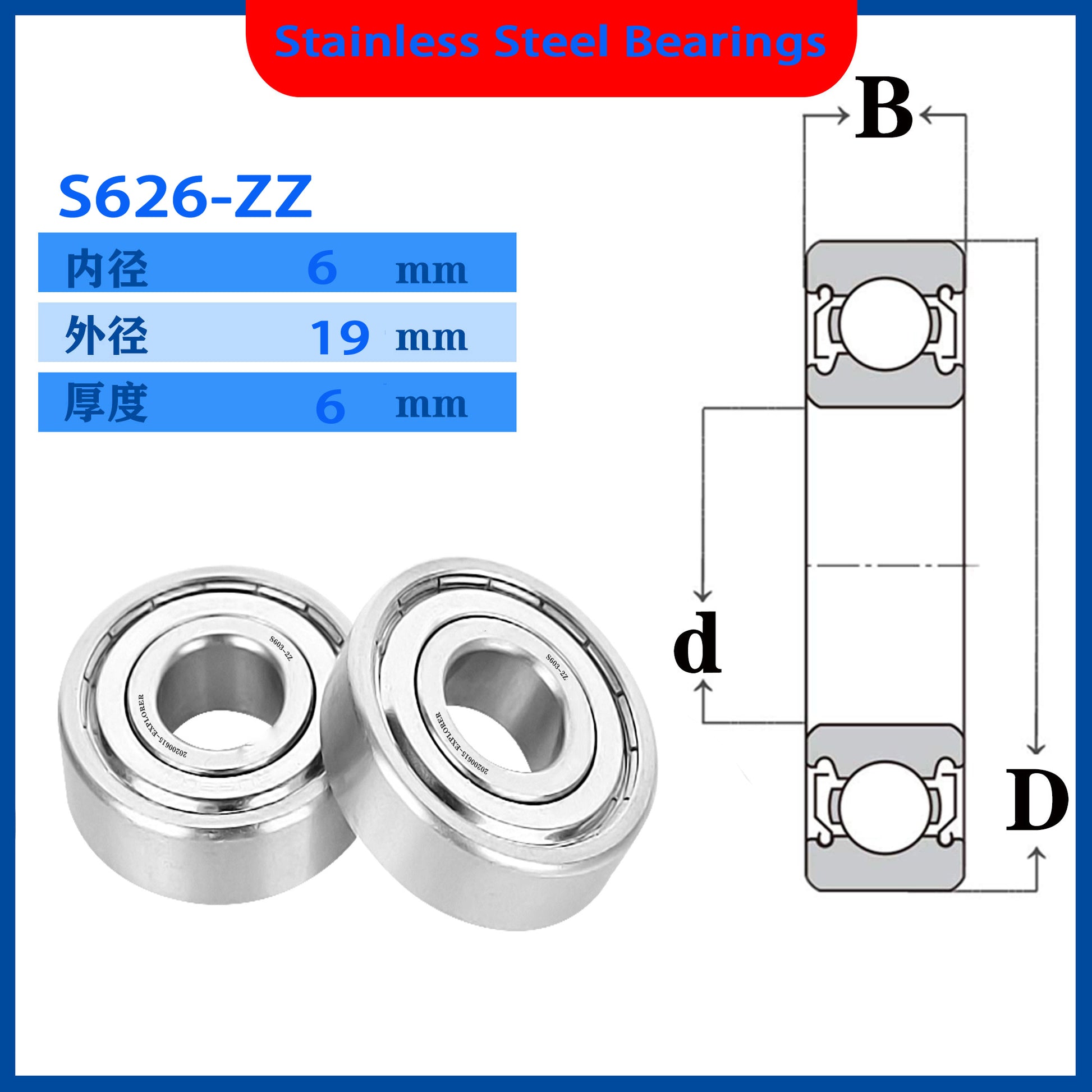 WZZG 20PCS Double Shroud Miniature Stainless Steel Bearing 626 S626ZZ 2RS