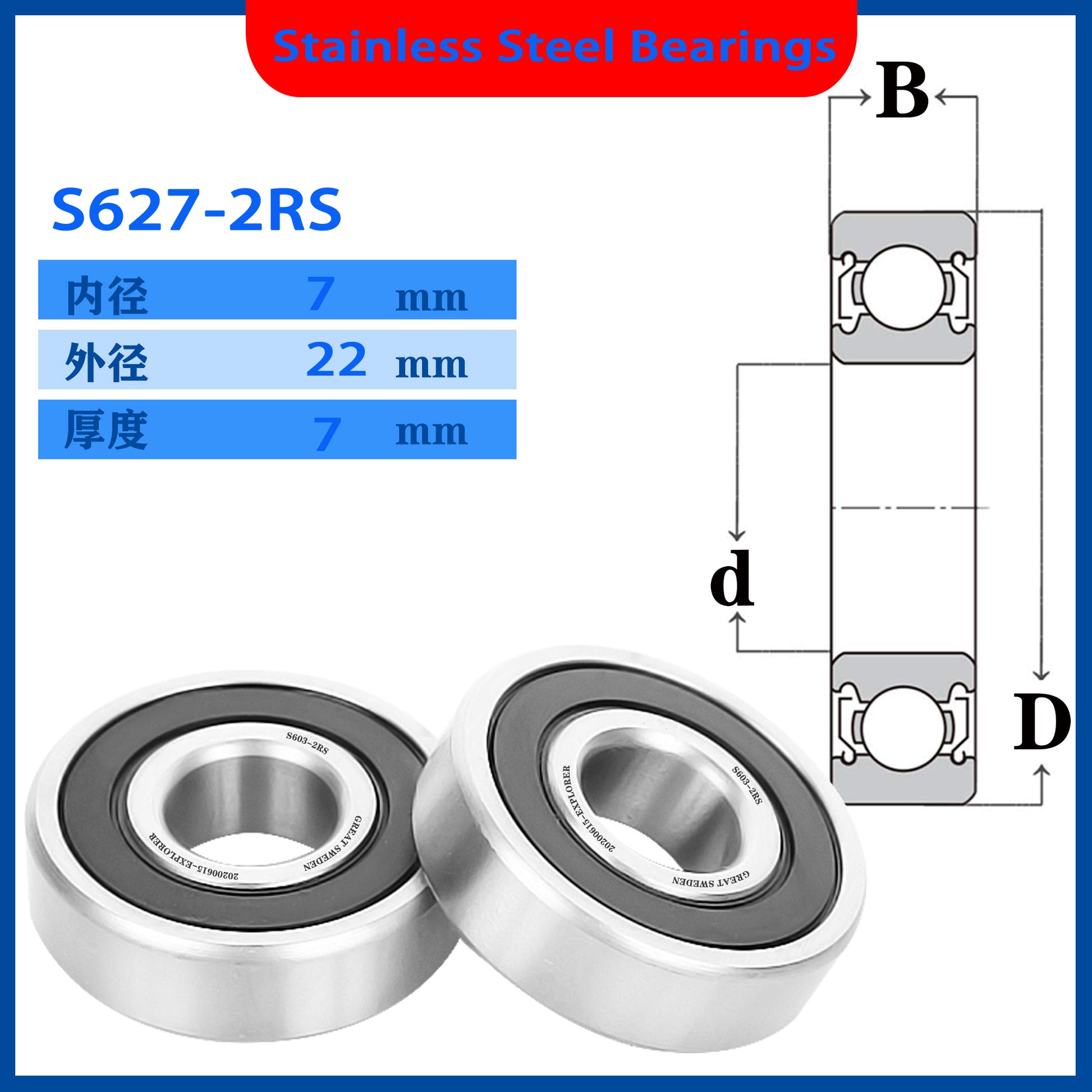 WZZG 20PCS Double Shroud Miniature Stainless Steel Bearing 627 S627ZZ 2RS