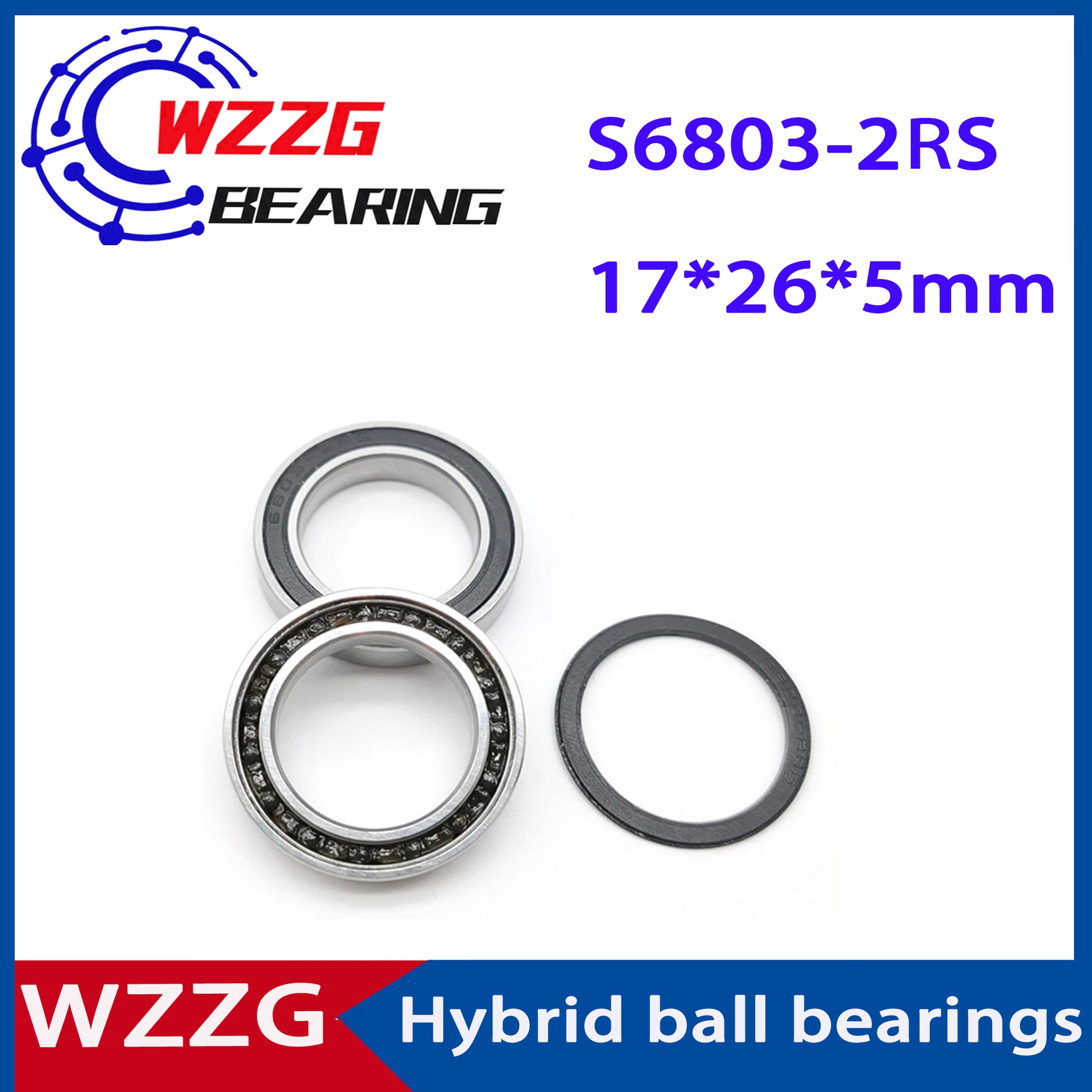 WZZG 2PC S6803 Bicycle shaft bearing 17*26*5mm stainless steel hybrid ceramic ball bearing