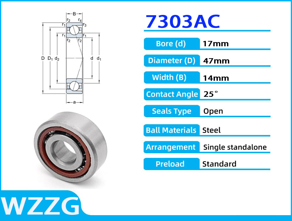 WZZG 4pcs/lot 7303AC ACM 17x47x14 mm angular contact bearings high quality bearings